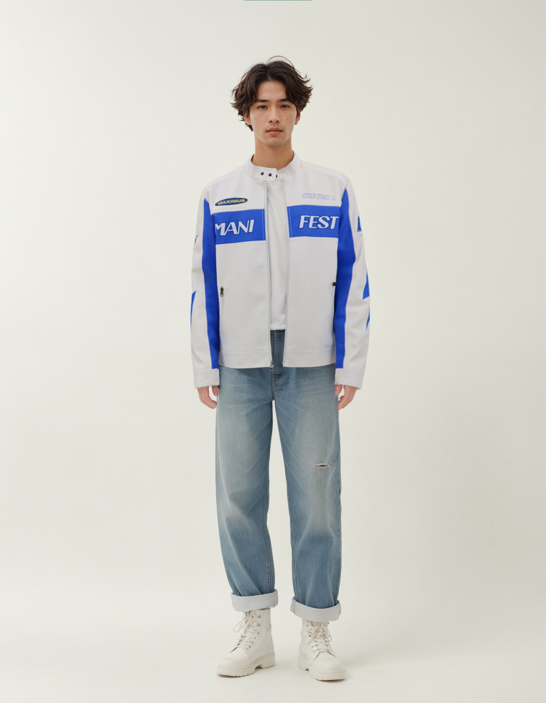 MEN'S RACING WOVEN PU JACKET - Blue/White