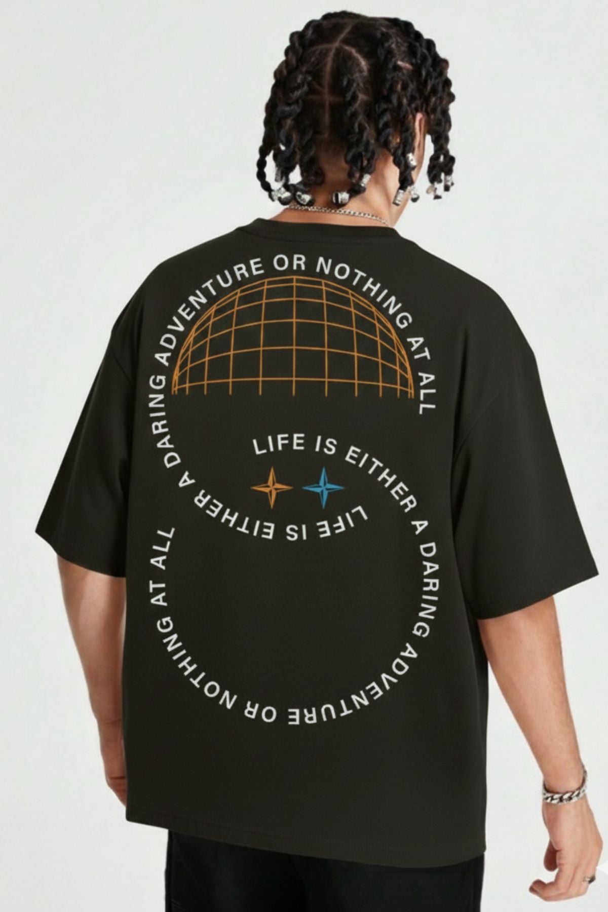 Featuring non PVC print and embroidery, the design showcases bold graphics across the front and back, highlighted with adventurous typography and global-inspired detailing. A perfect piece for those who live with curiosity and style.