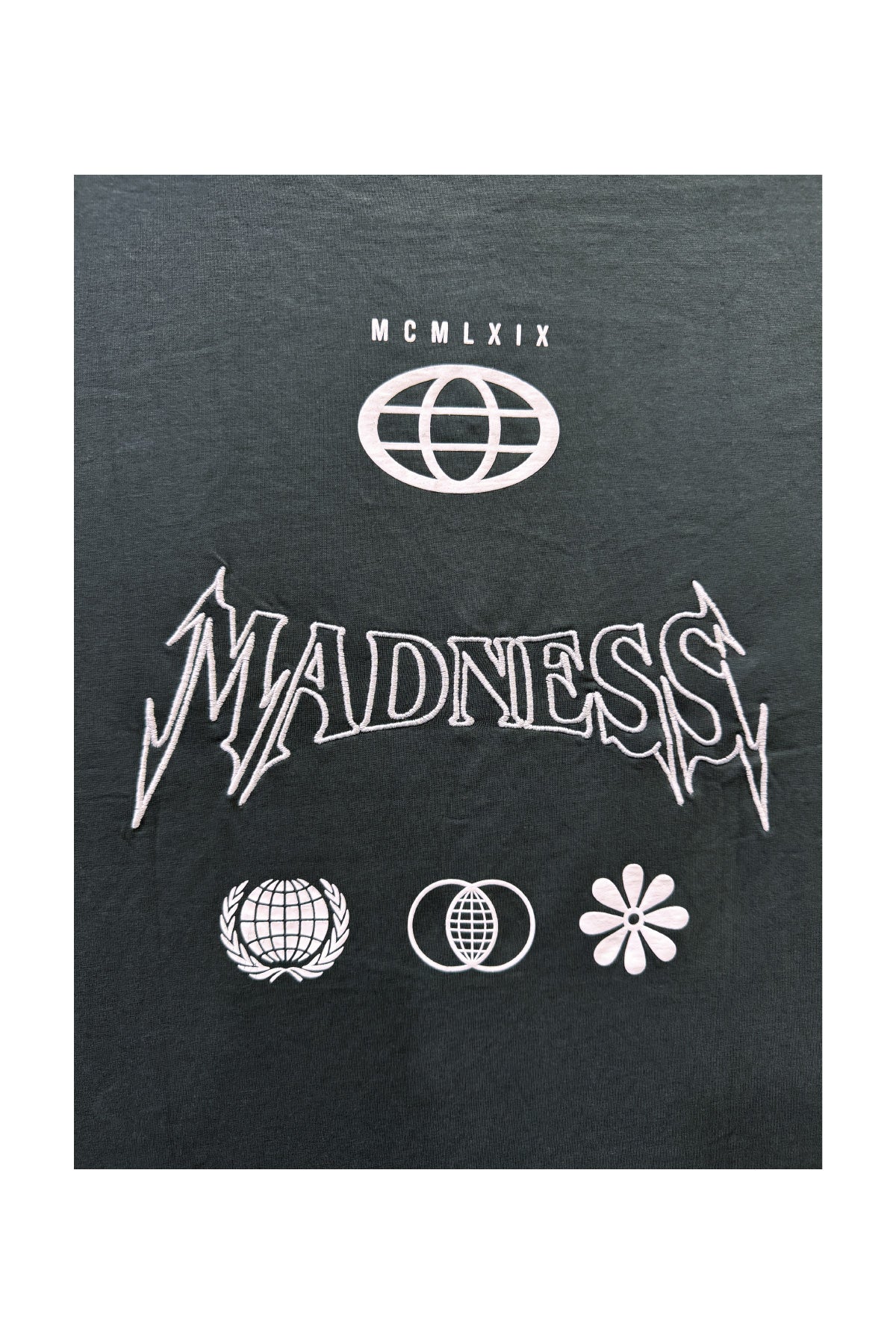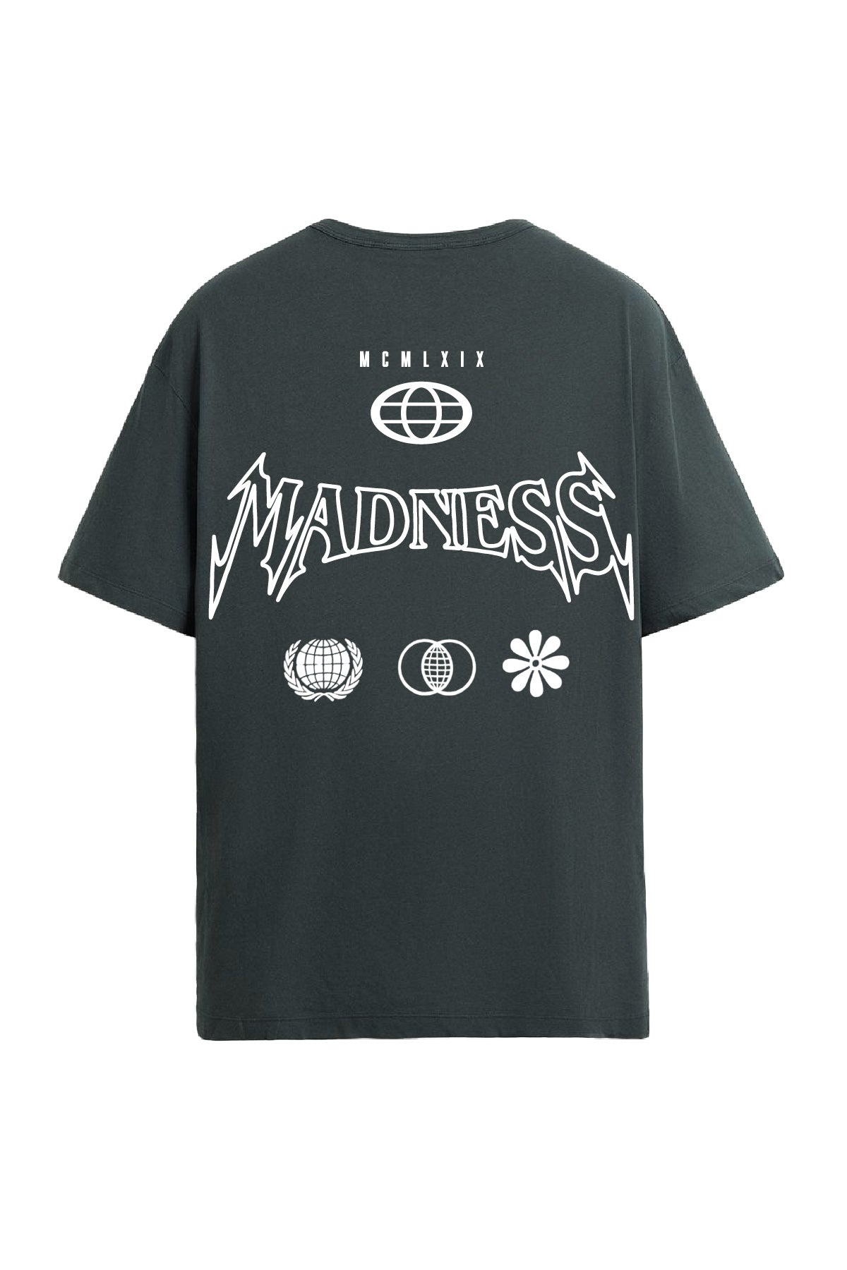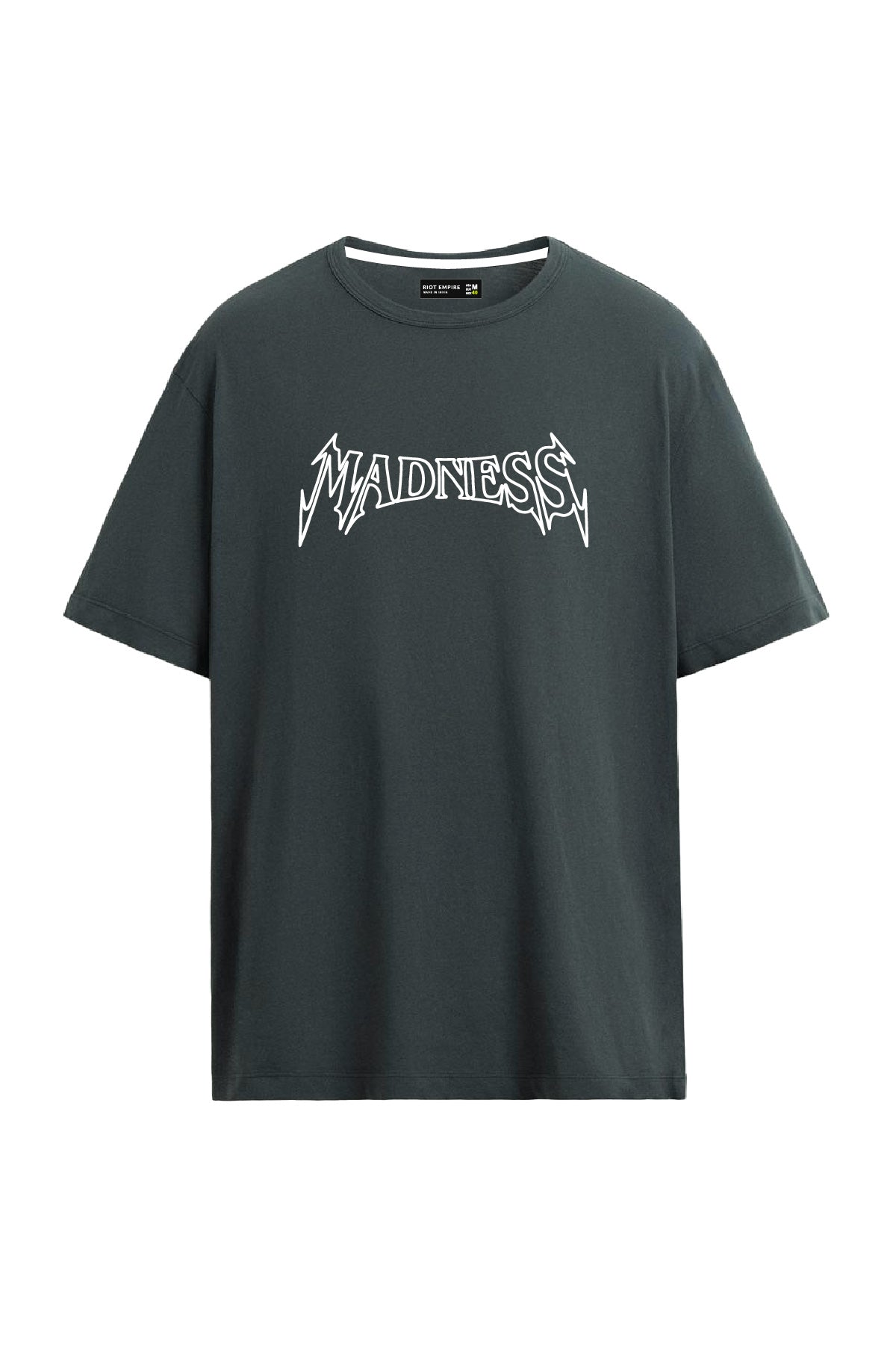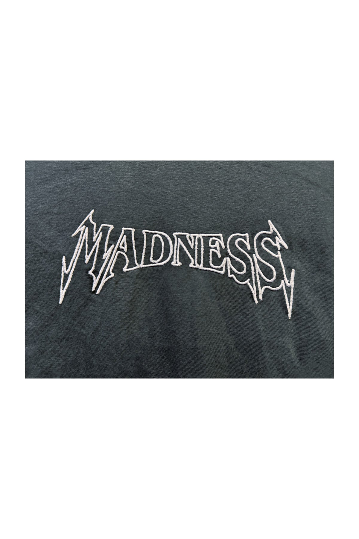 Featuring embroidery and HD print with non-PVC detailing, the striking "Madness" lettering on both the front and back makes this tee a statement piece. The clean yet rebellious aesthetic gives it standout appeal for those who live unapologetically.