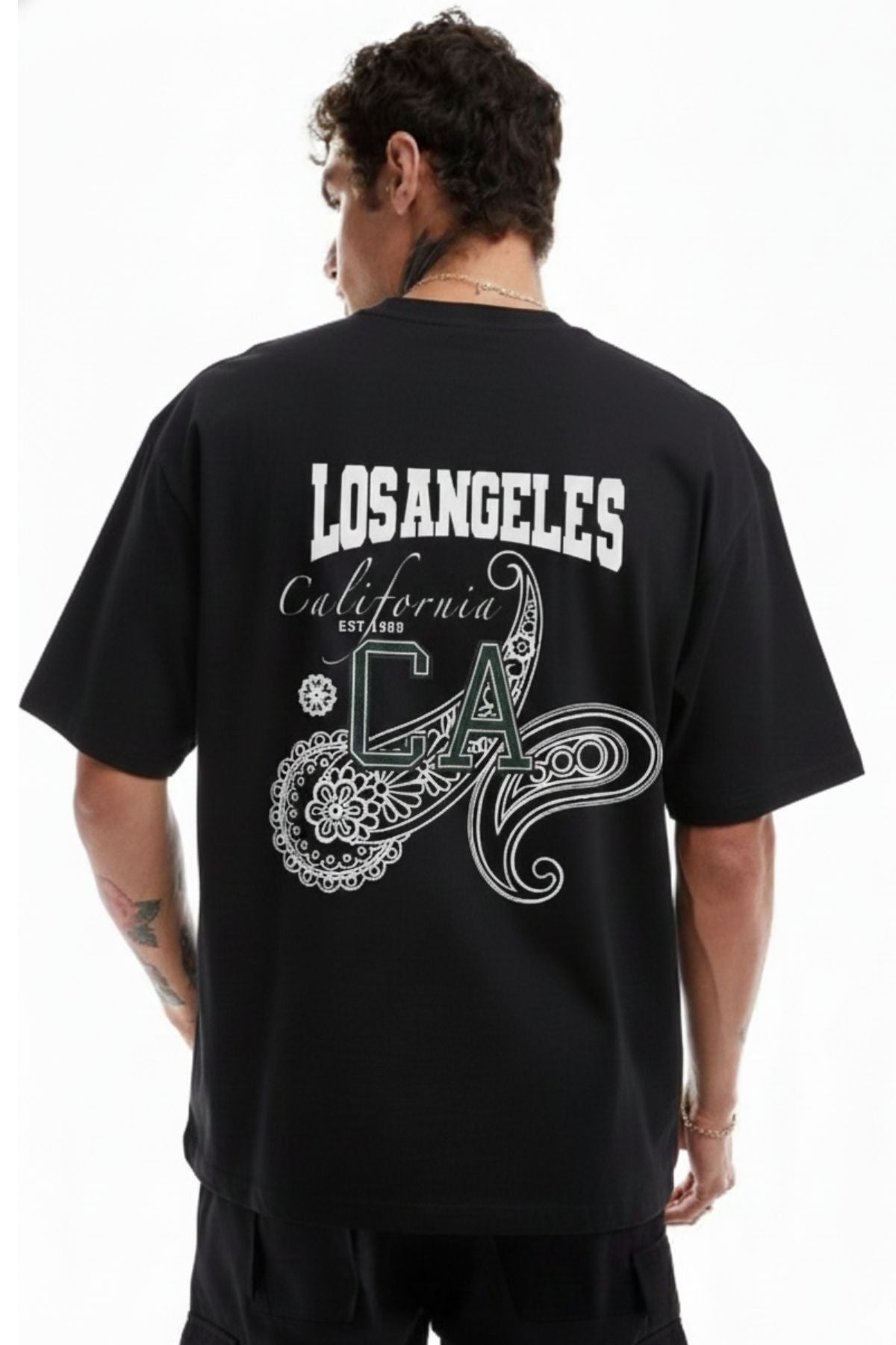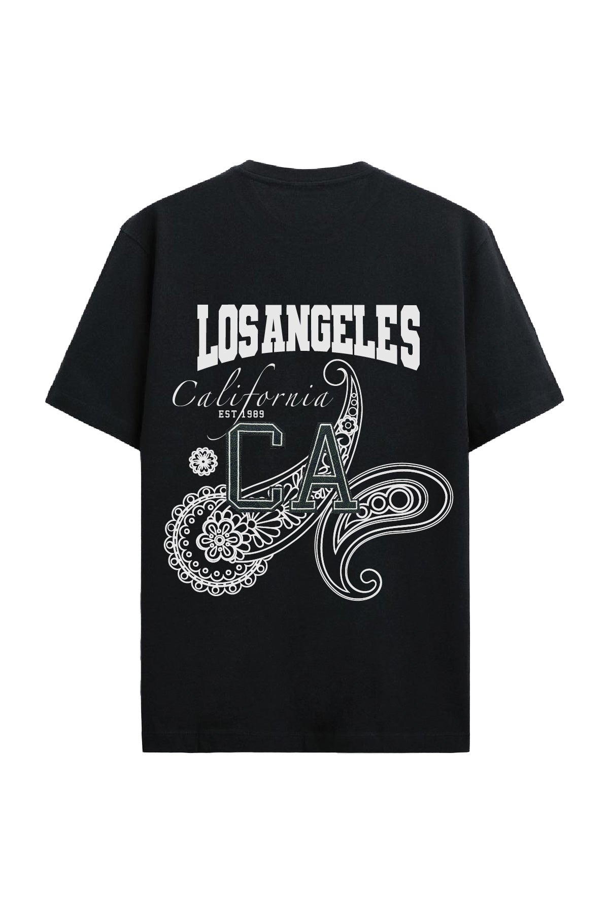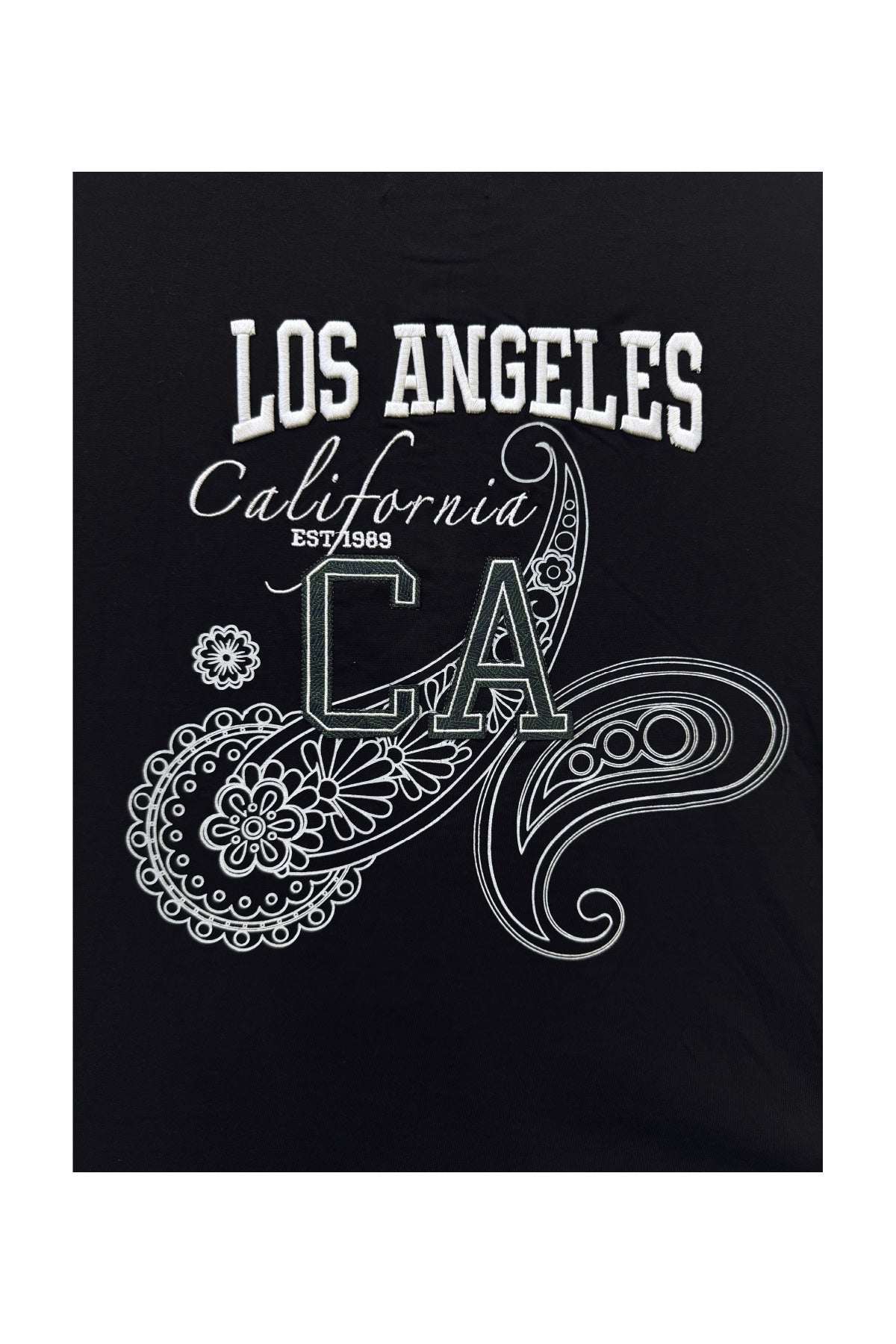 Featuring appliqué embroidery combined with HD print, this tee showcases striking "Los Angeles, California" graphics with a standout paisley-inspired artwork for a layered effect. Designed for those who embrace urban style with confidence.