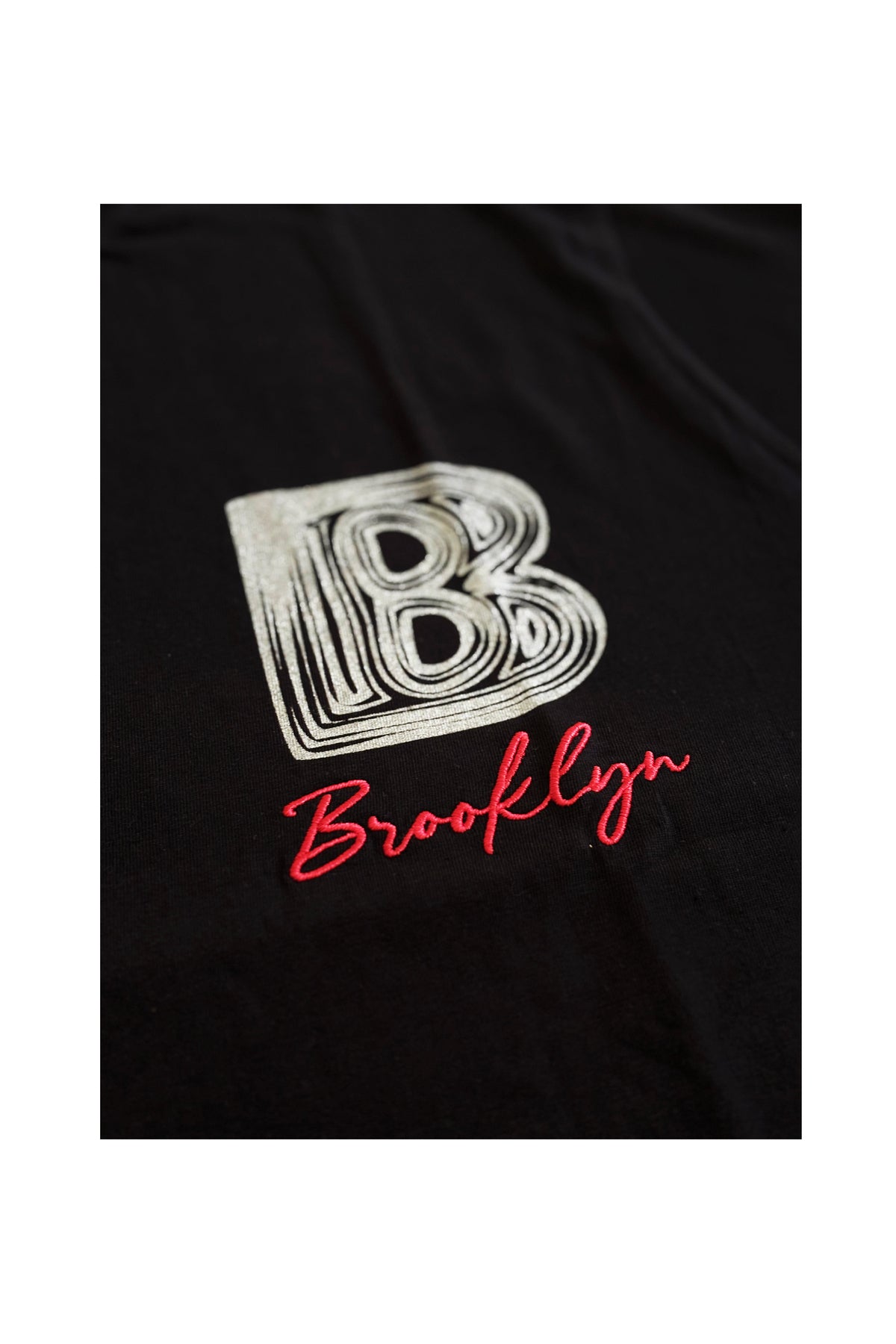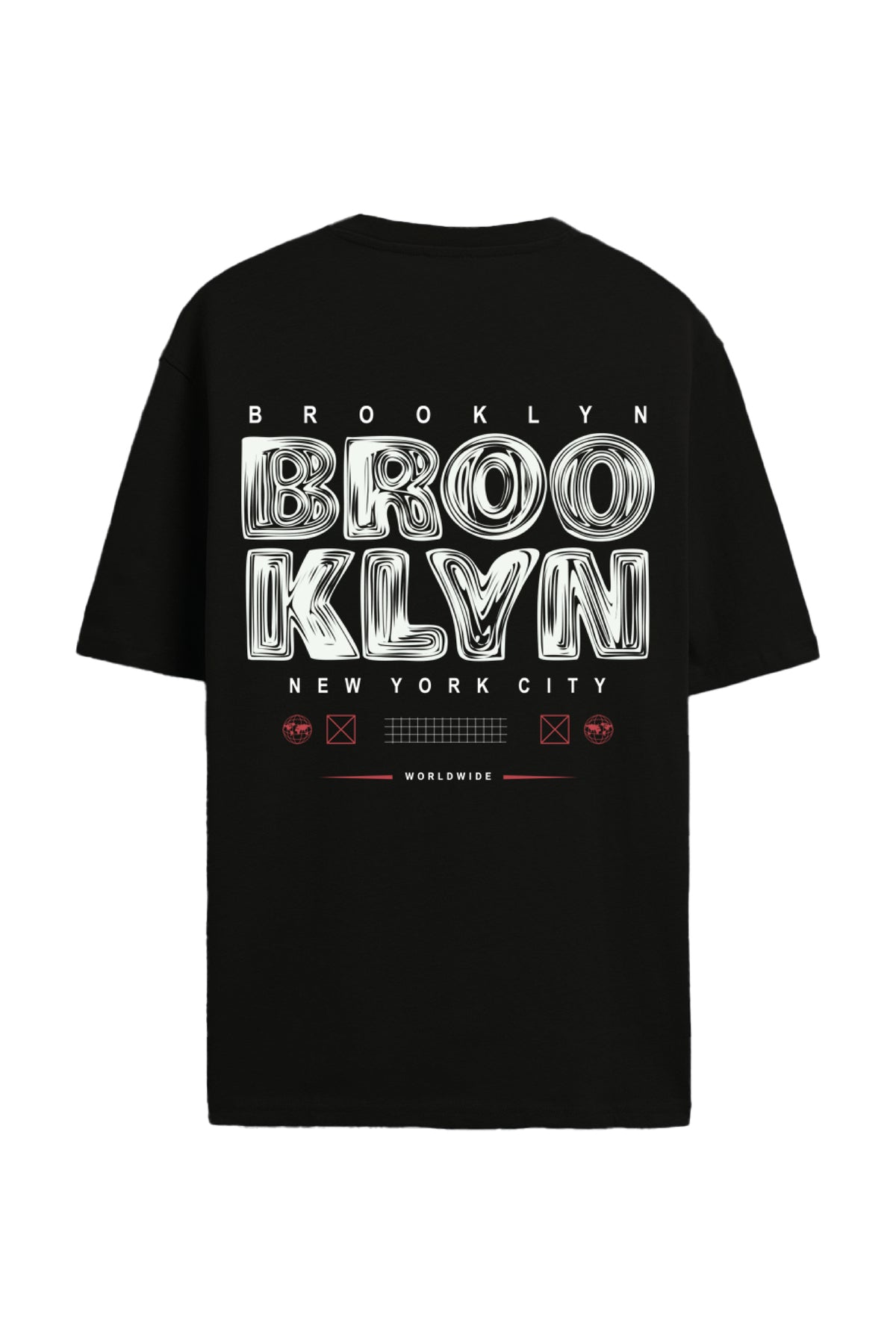 Featuring non-PVC print and embroidery, the design highlights bold "Brooklyn" typography across the back with striking graphic details in contrasting tones, while the front is finished with a minimal chest graphic for a balanced look. A piece that channels both modern aesthetics and city-inspired energy, making it a must-have for those who rep their city in style.