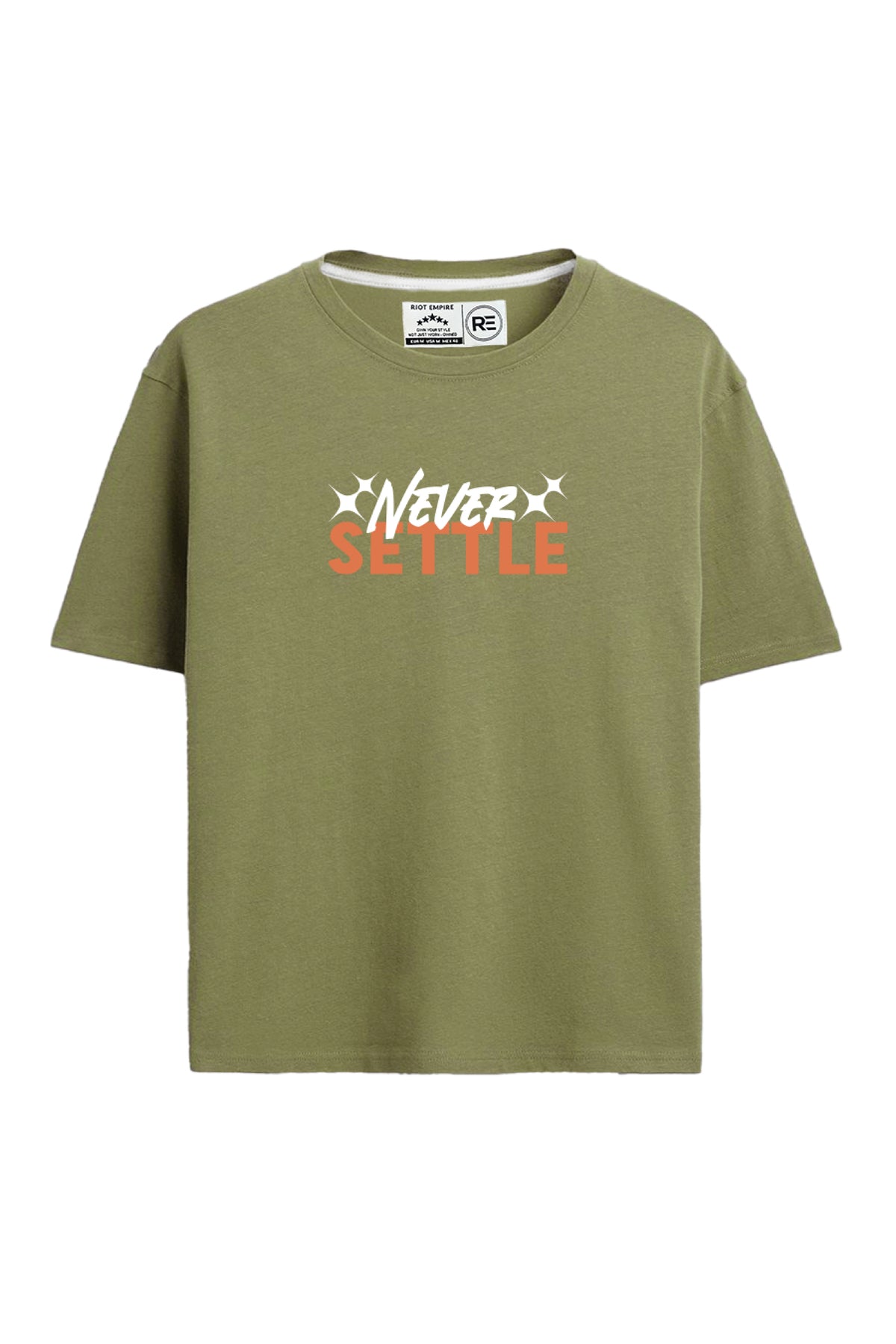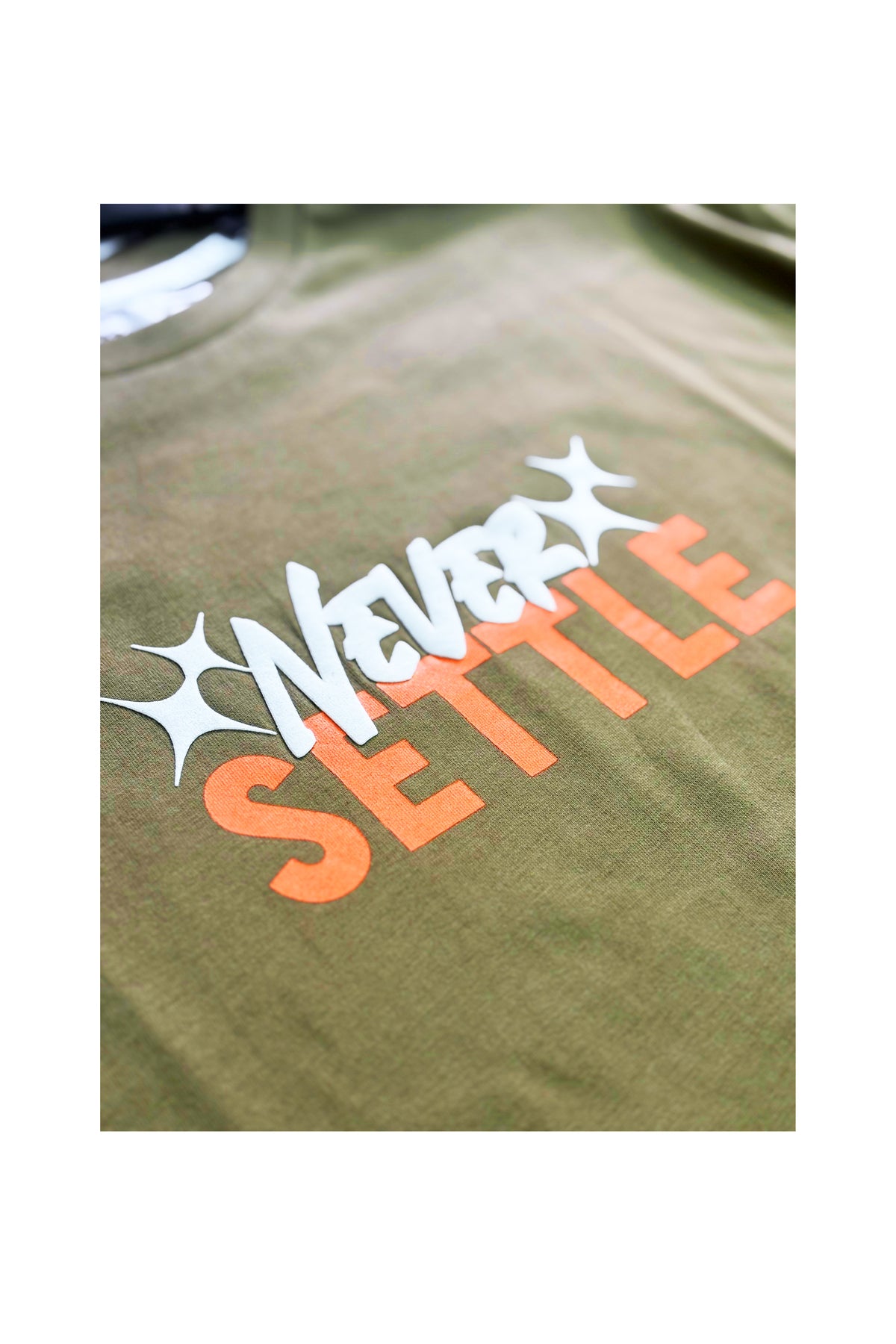 Olive Green “Never Settle” Motivational Graphic T-shirt